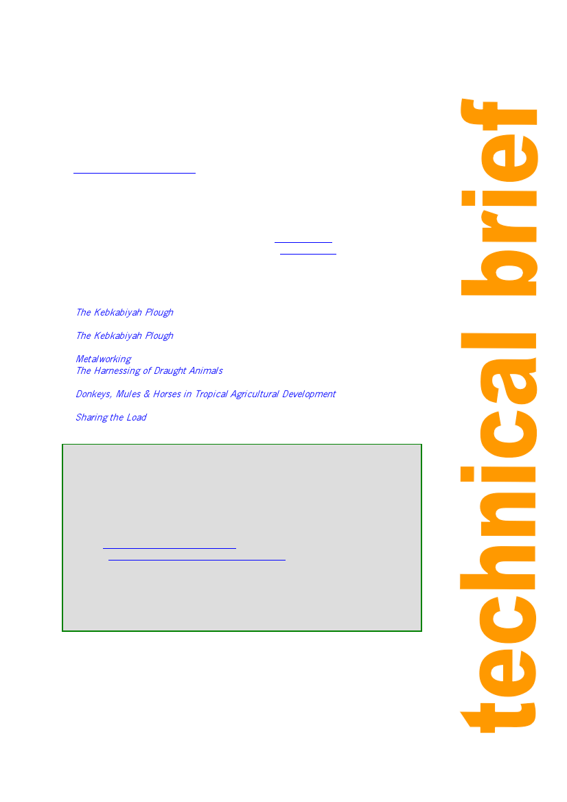 • The Harnessing of Draught Animals Ian Barwell & Michael Ayre, Practical Action