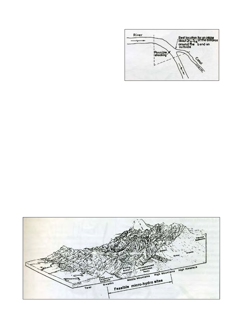 of a bend. To minimise sediment load and to ensure flow