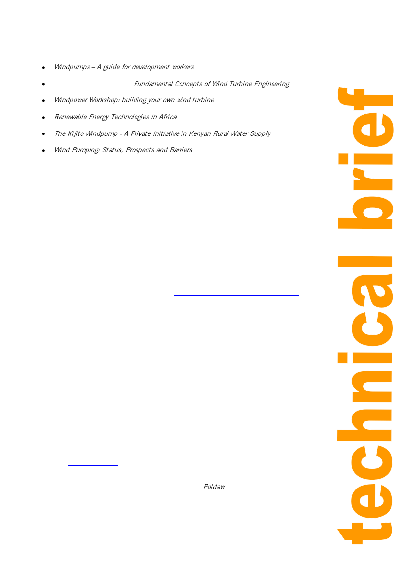 Windpumps – A guide for development workers P. Fraenkel, R. Barlow, F. Crick, A.