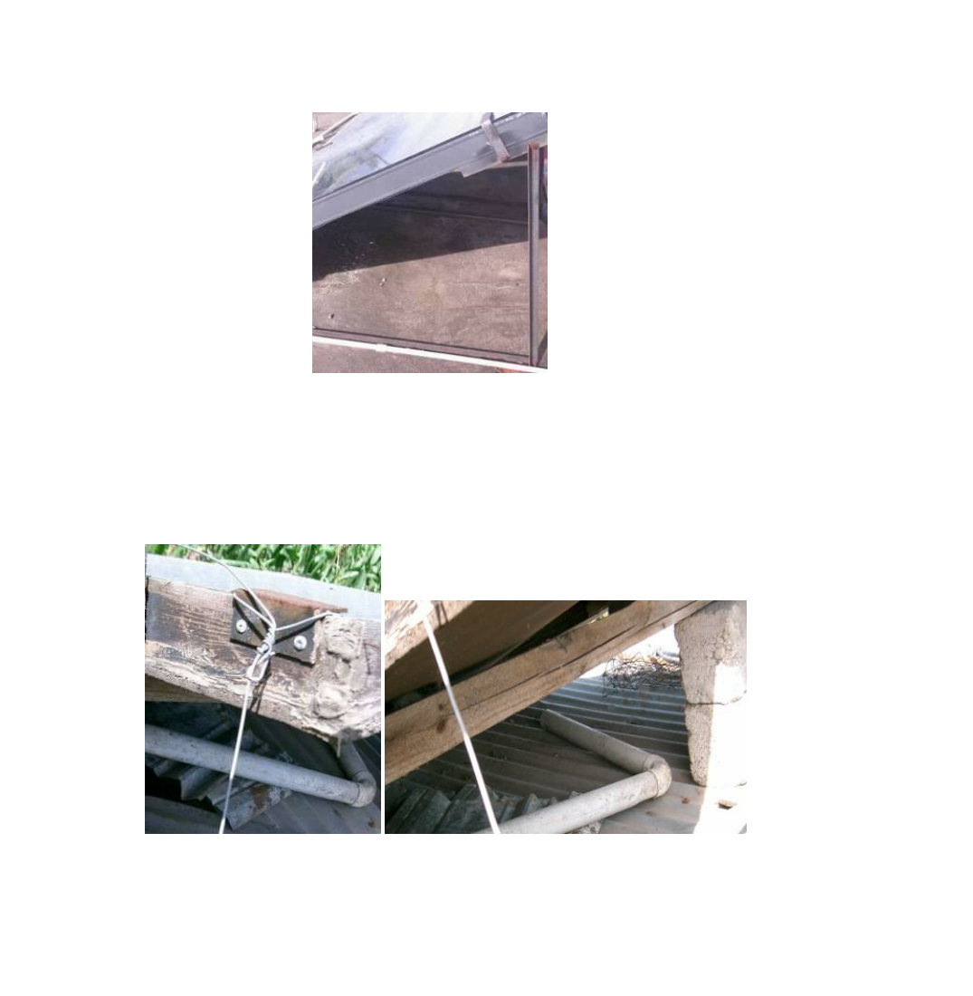 One of the three collectors is just supported against a wooden beam, and the wires used to