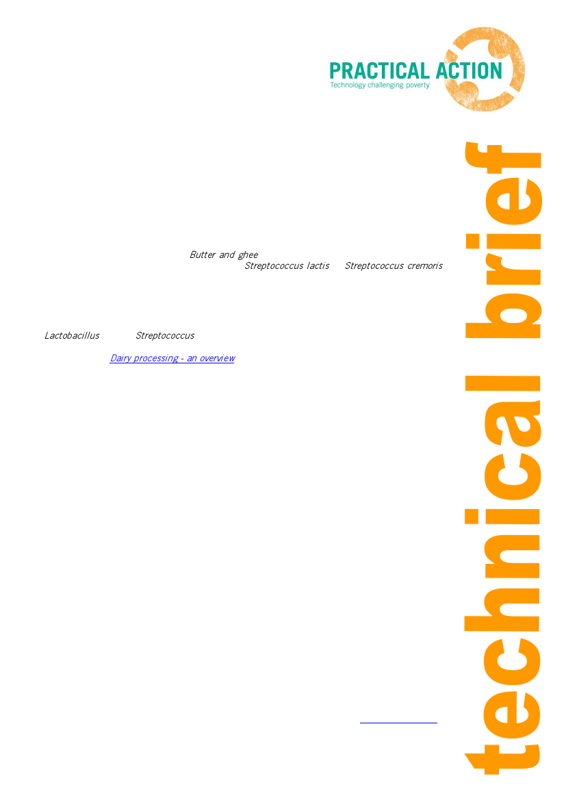manufacture (see Technical Brief: Butter and ghee), but it is also produced as a product from