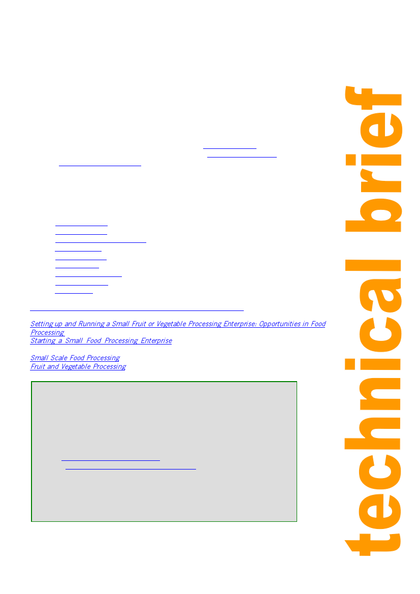 Setting up and Running a Small Fruit or Vegetable Processing Enterprise: Opportunities in Food