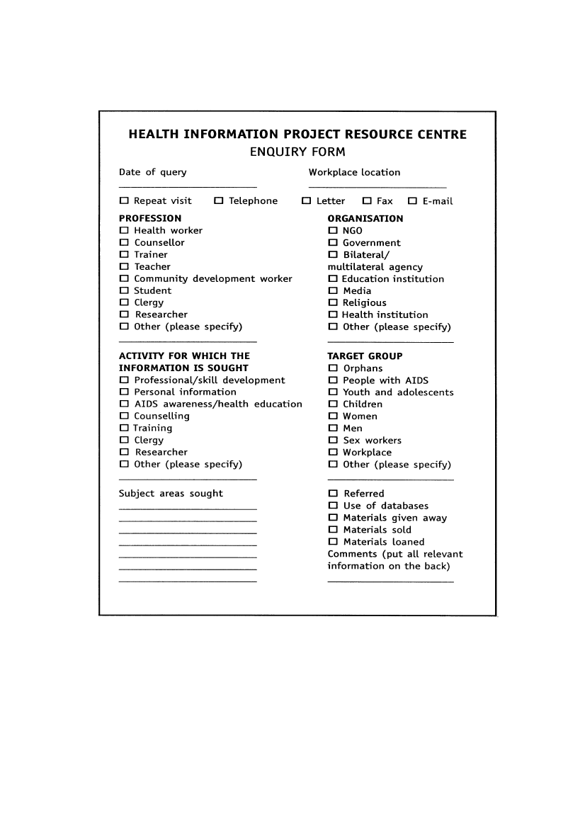 Sample enquiries form