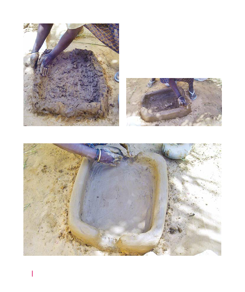 6. The clumps of mud are patted so that a flat
