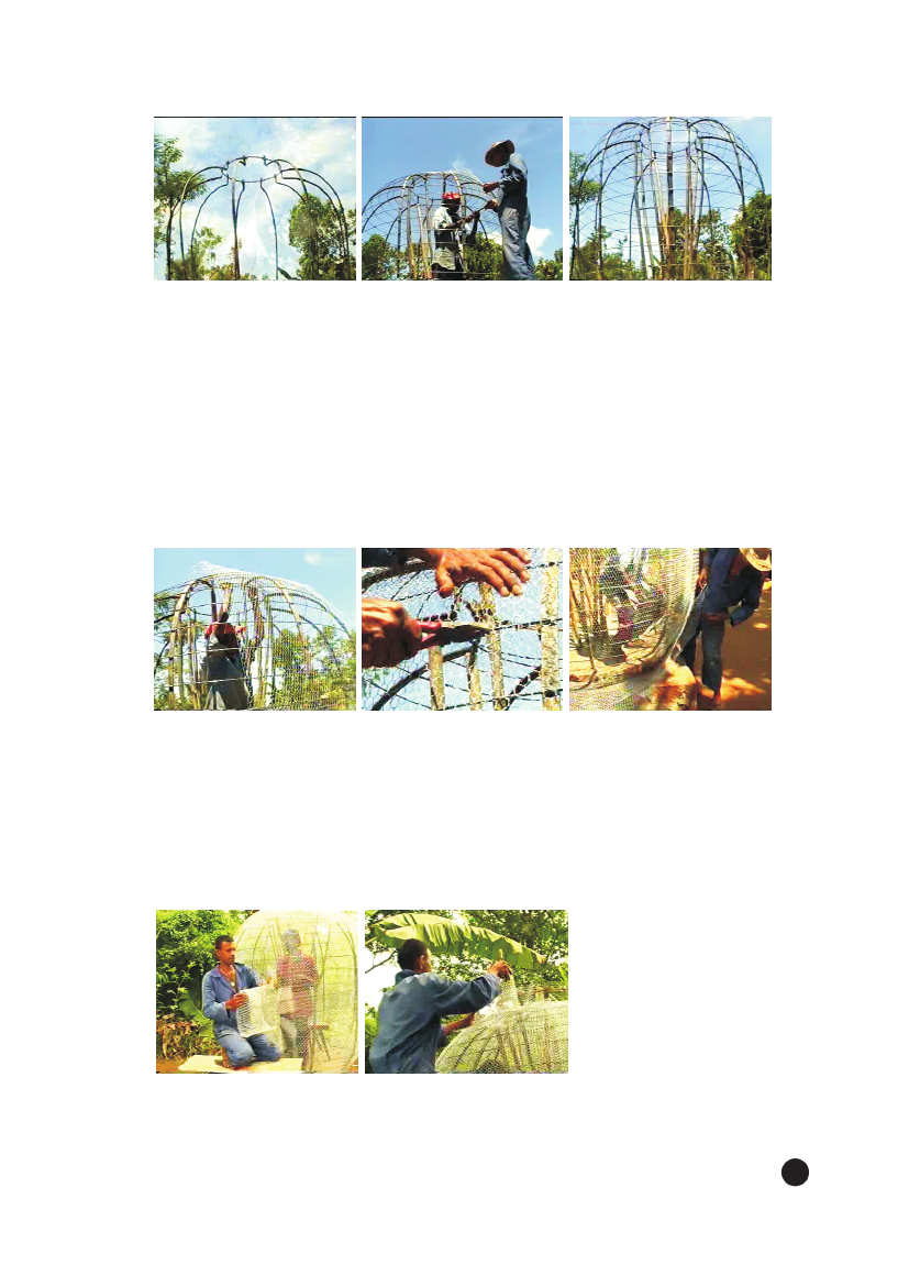 to the metal hoops with binding wire. Make sure that joints of the bottom and top layers of mesh are