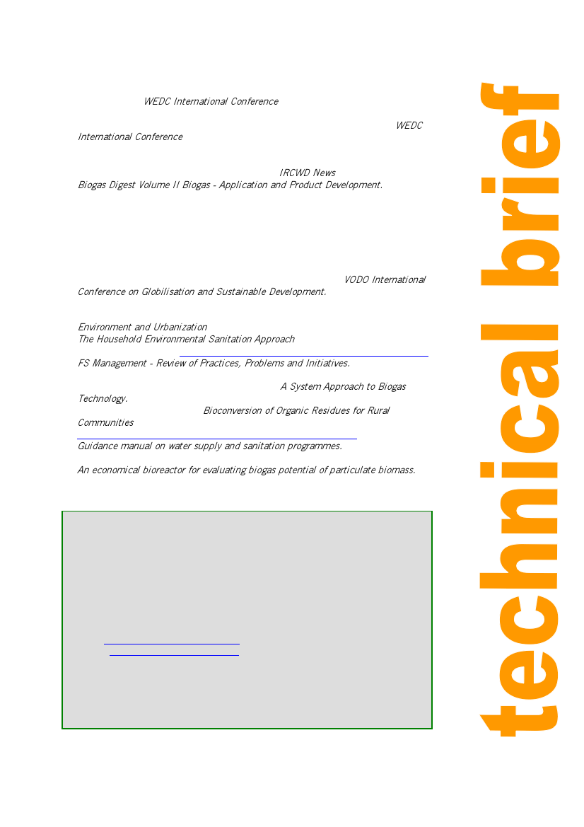 • Sustainable Development Department. (1996). A System Approach to Biogas