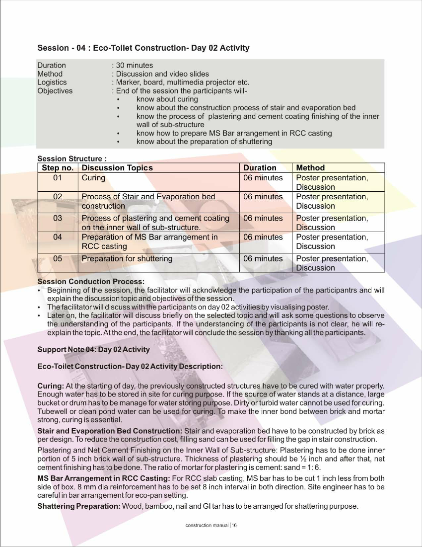 < prev - next > Water and sanitation Sanitation training manual for eco toilet construction (Printable PDF)